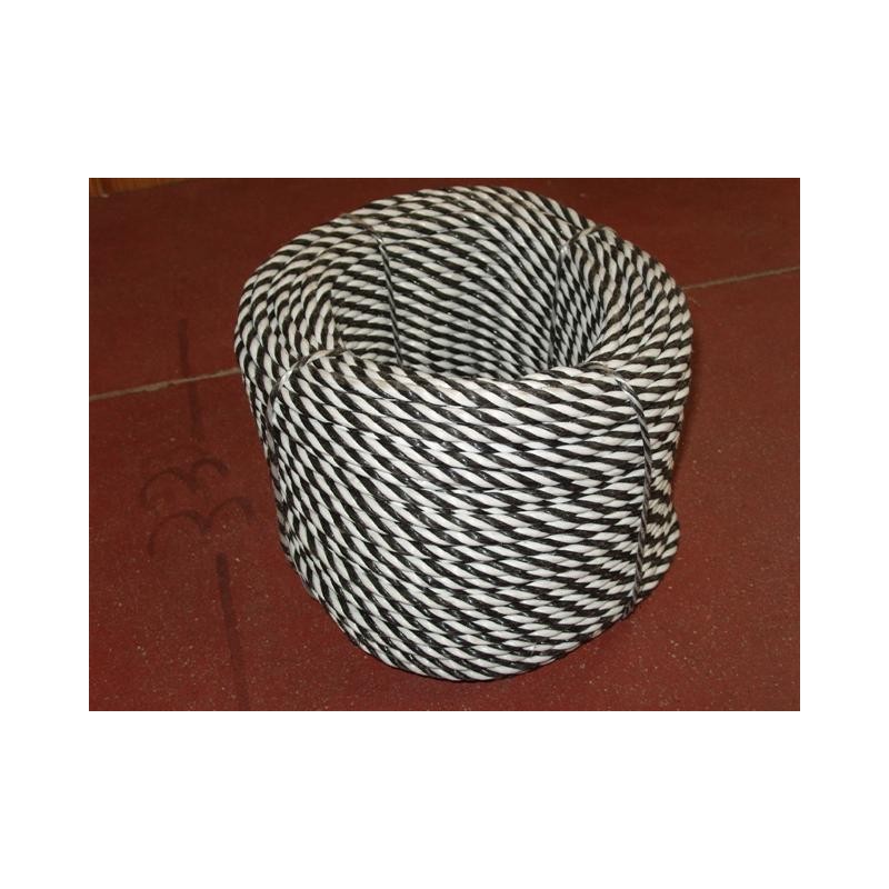Cordage en Polypropylène Cablé Ø 8 mm, Noir/Blanc, 4 torons, bobine de 100 ml