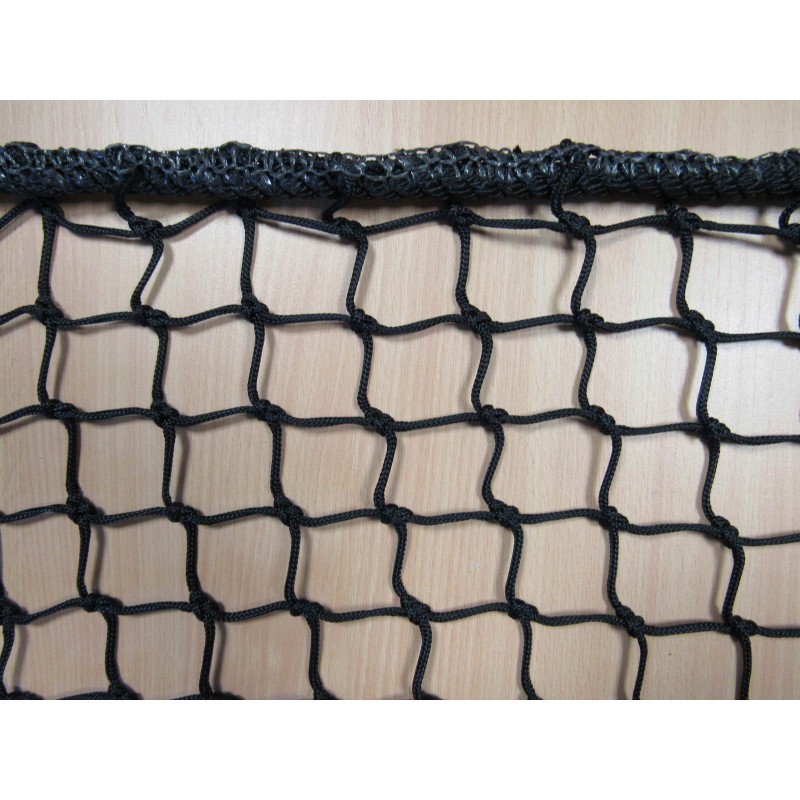 FILET DE SECURITE EN 1263-1, : mailles 50 mm, Ø 4.75 mm, découpées en mailles carrées, en tresse polyamide noire haute tenacité, équipé d’une ralingue noire haute tenacité Ø 12 mm, passée entre toutes les mailles et entièrement cousue au pourtour du filet