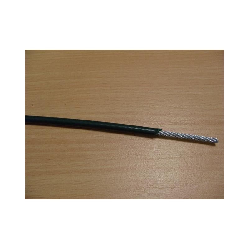 Cable acier gainé Coloris : Vert Ø : 3 m/m, Fini Ø 5 m/m Poids : 70 grammes/ml Vendu au mètre ou en bobine de 300 mètres, de 500 mètres ou de 1000 mètres (Selon stock disponible)