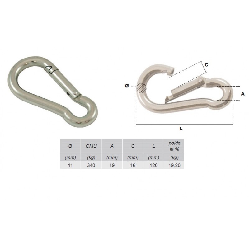 Mousqueton 120 x 11 cm en Acier Galvanisé